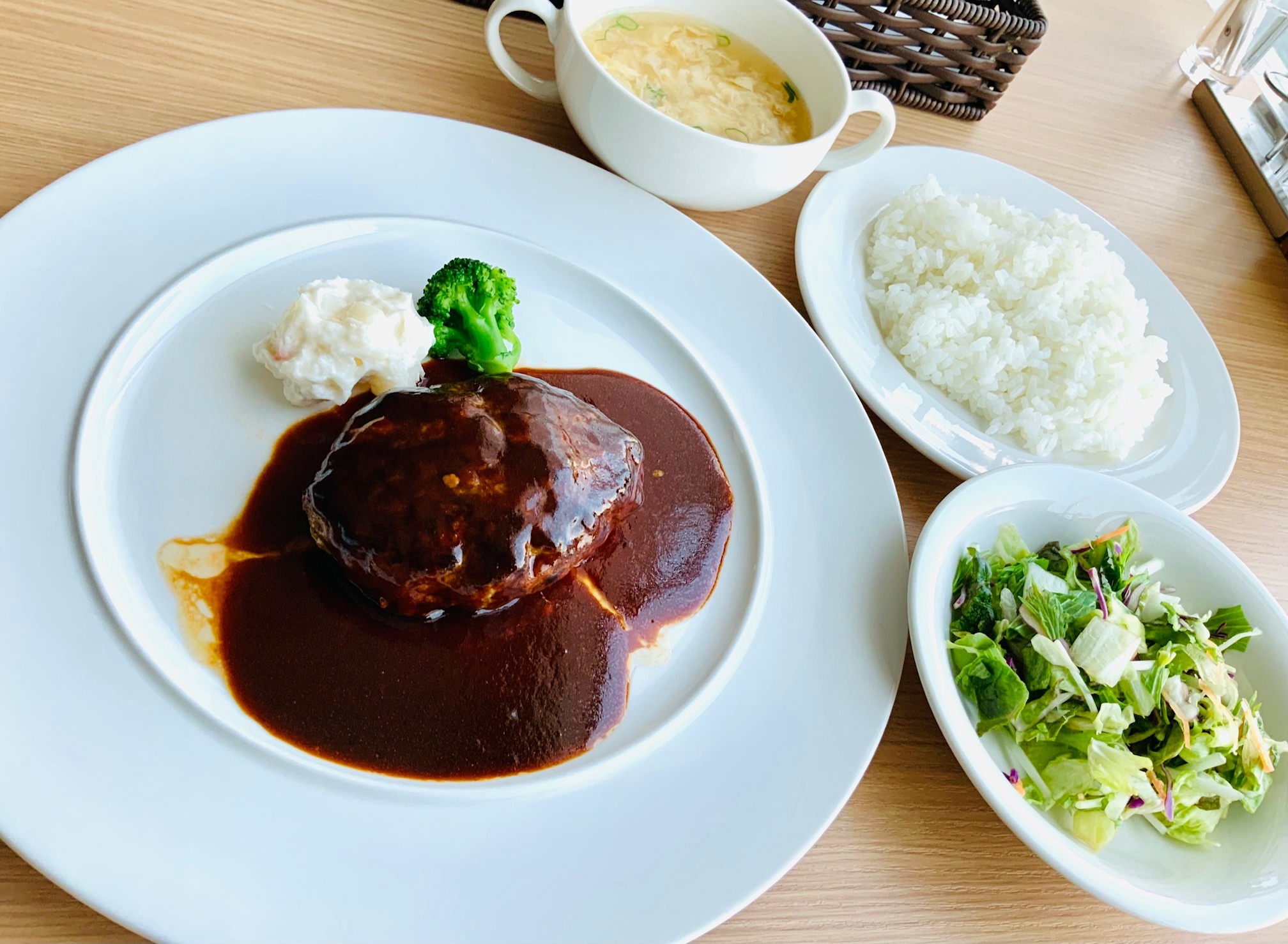 本日のタイムランチメニューは、『ハンバーグステーキ デミグラスソース』です。